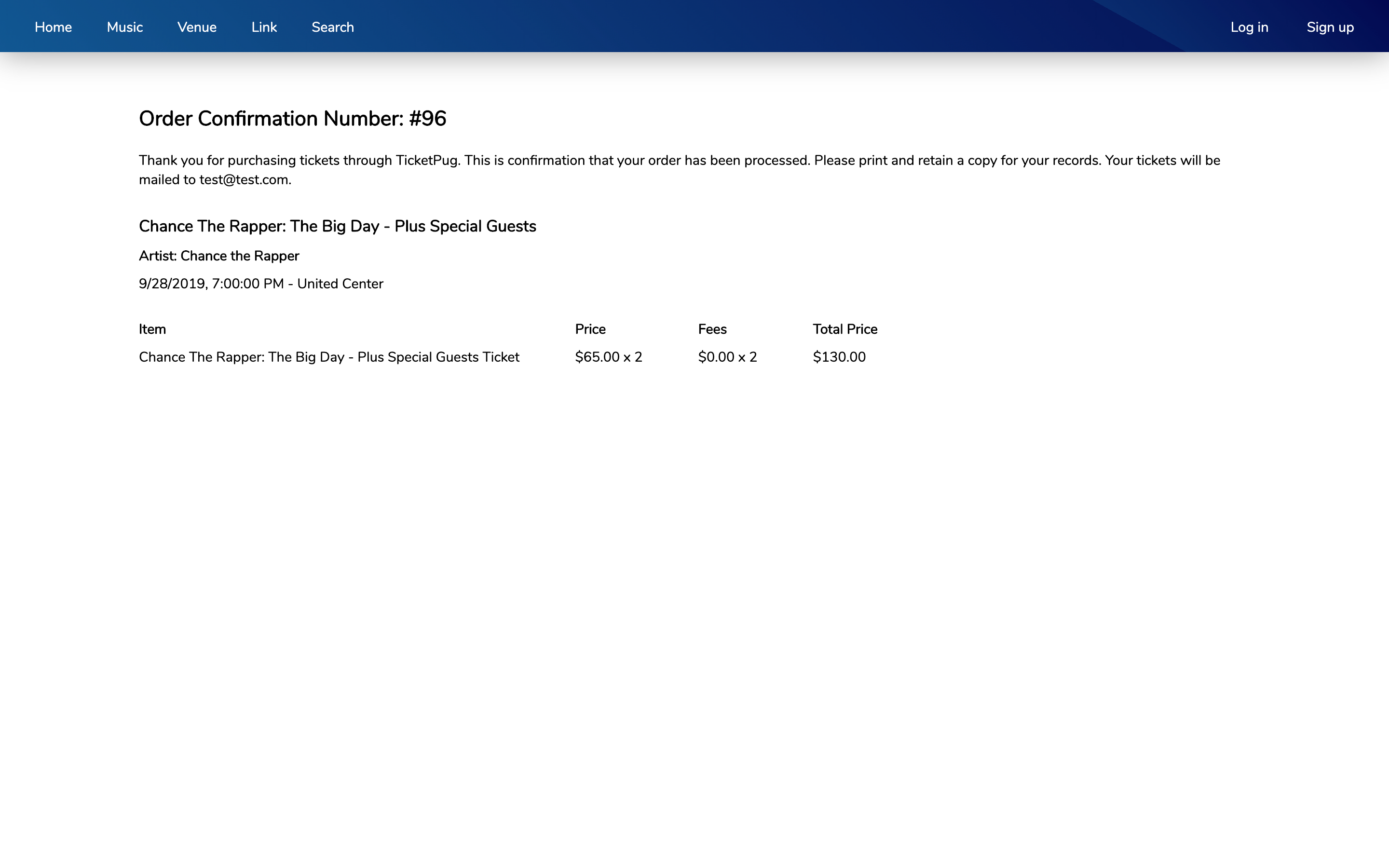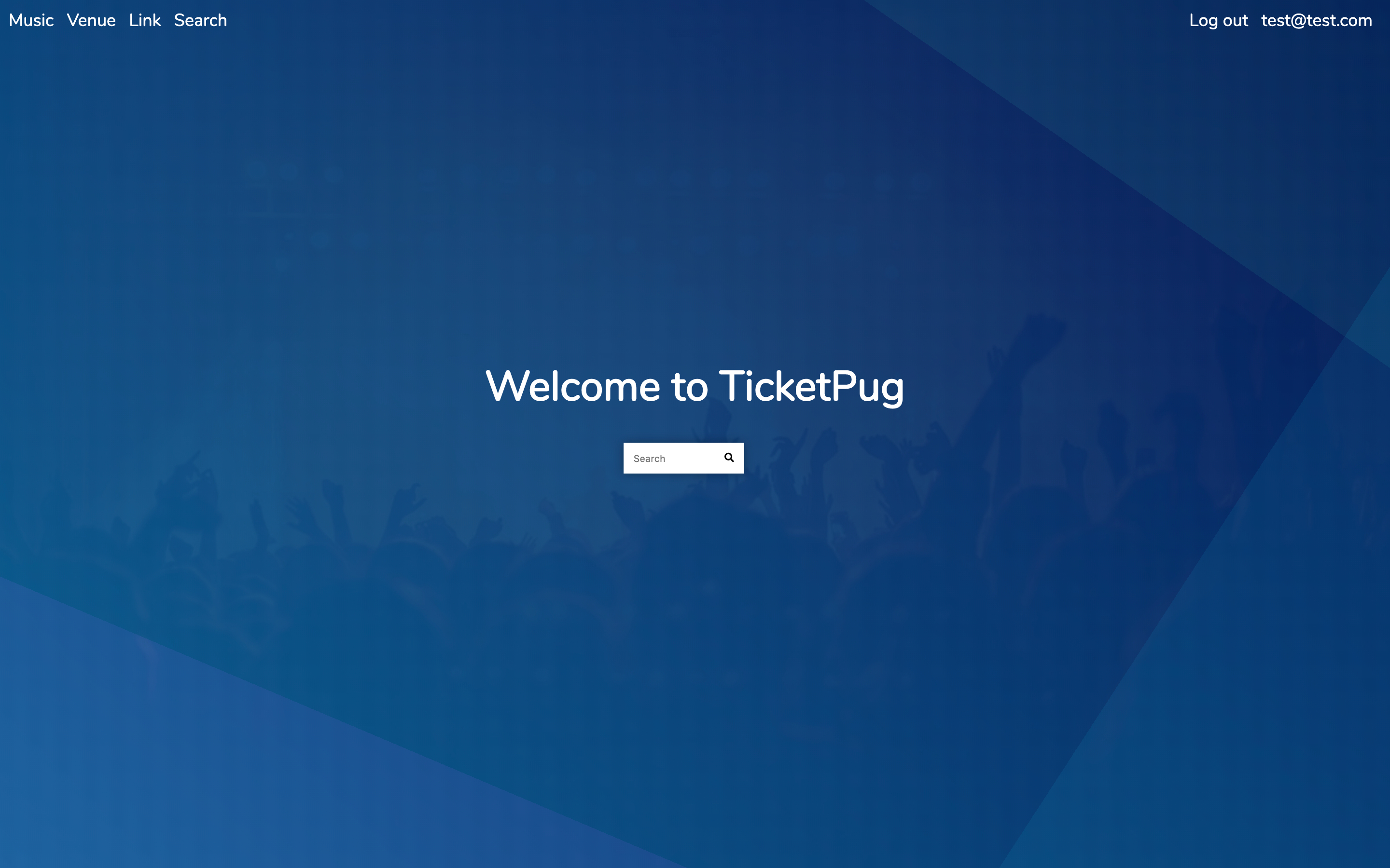 TicketPug is a proof-of-concept e-commerce site that allows users to purchase concert tickets directly from the venue hosting the event.